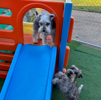 If you were thinking about getting a second dog in hopes that it'll play with your first, it doesn't always work out. Don't get me wrong, Gus and Dash are best buds, but they don't really play together. They're more like step brothers. Dash consistently joins Gus for cuddles and they are always near each other at doggie daycare. Gus tolerates his nearness, but doesn't initiate it.